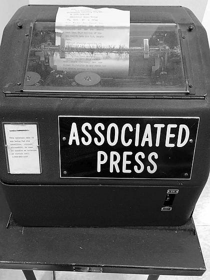 The AP machine, the highest paid entity in the newsroom.I never had to dramatically “stop the presses”, but I didn’t make any friends in the circulation department, who lost newsstand sales for every minute after 1 pm the paper hit the streets.)